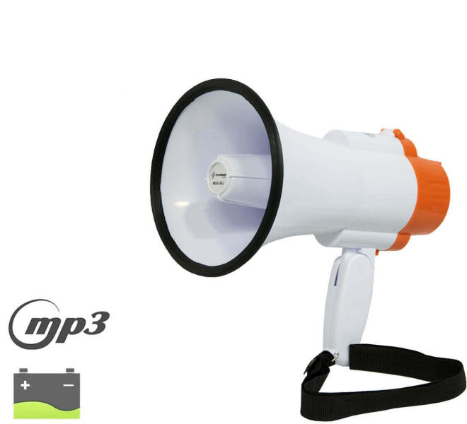 szócső, megafon, 30W, akkumulátoros, beszéd, felvétel, MP3